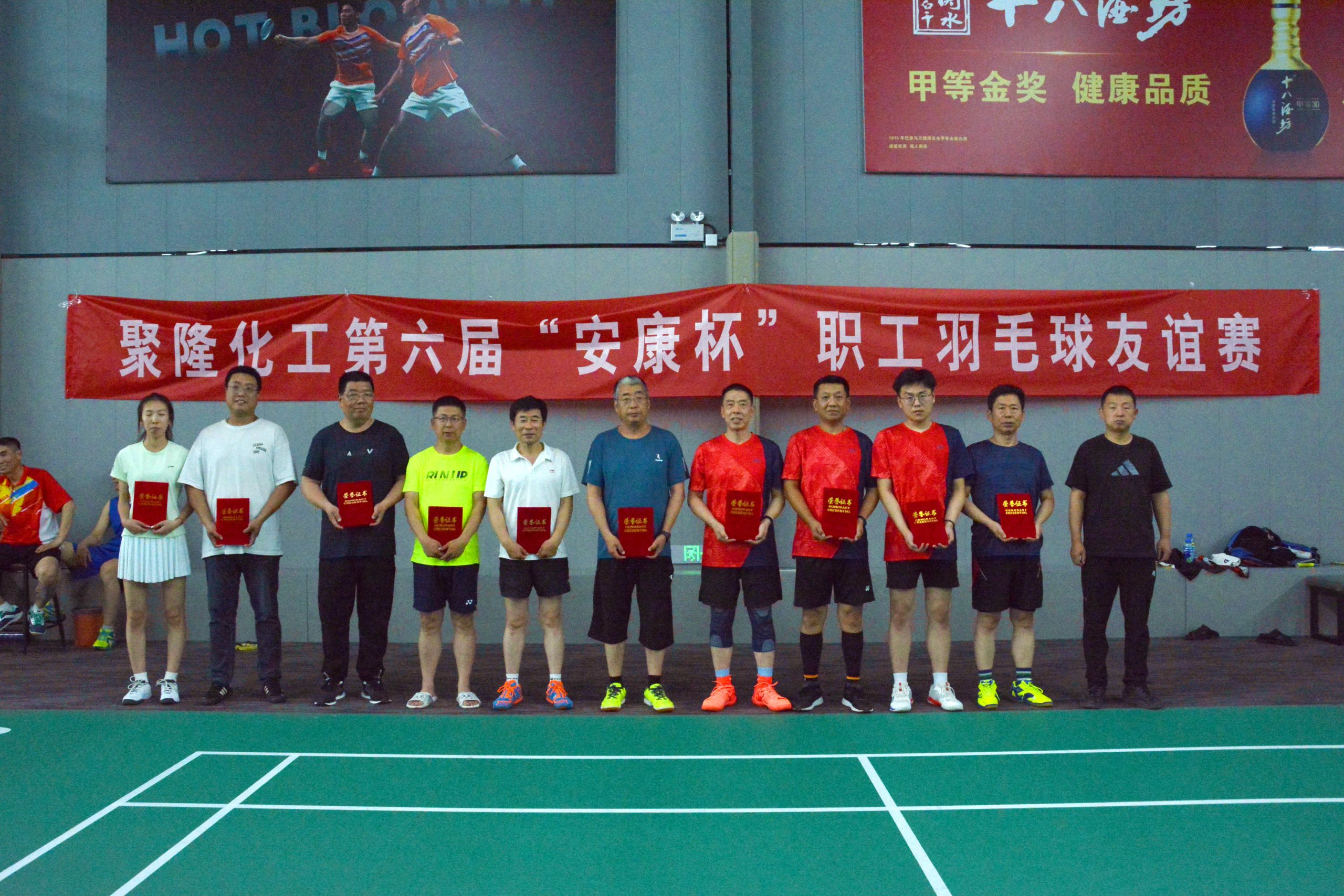 6月15日,滄州聚隆化工有限公司工會舉辦2024年第六屆“安康杯”職工羽毛球友誼賽,滄州聚隆化工有限公司黨委副書記、紀委書記、工會主席王力蒞臨比賽現場為選手加油鼓勁并為獲獎選手頒獎。來自該公司6個分工會團體代表隊和所屬各單位共計50余名職工參加了比賽。進一步豐富了職工文化生活,加強了職工之間的溝通交流,團隊協作能力得到不斷強化。